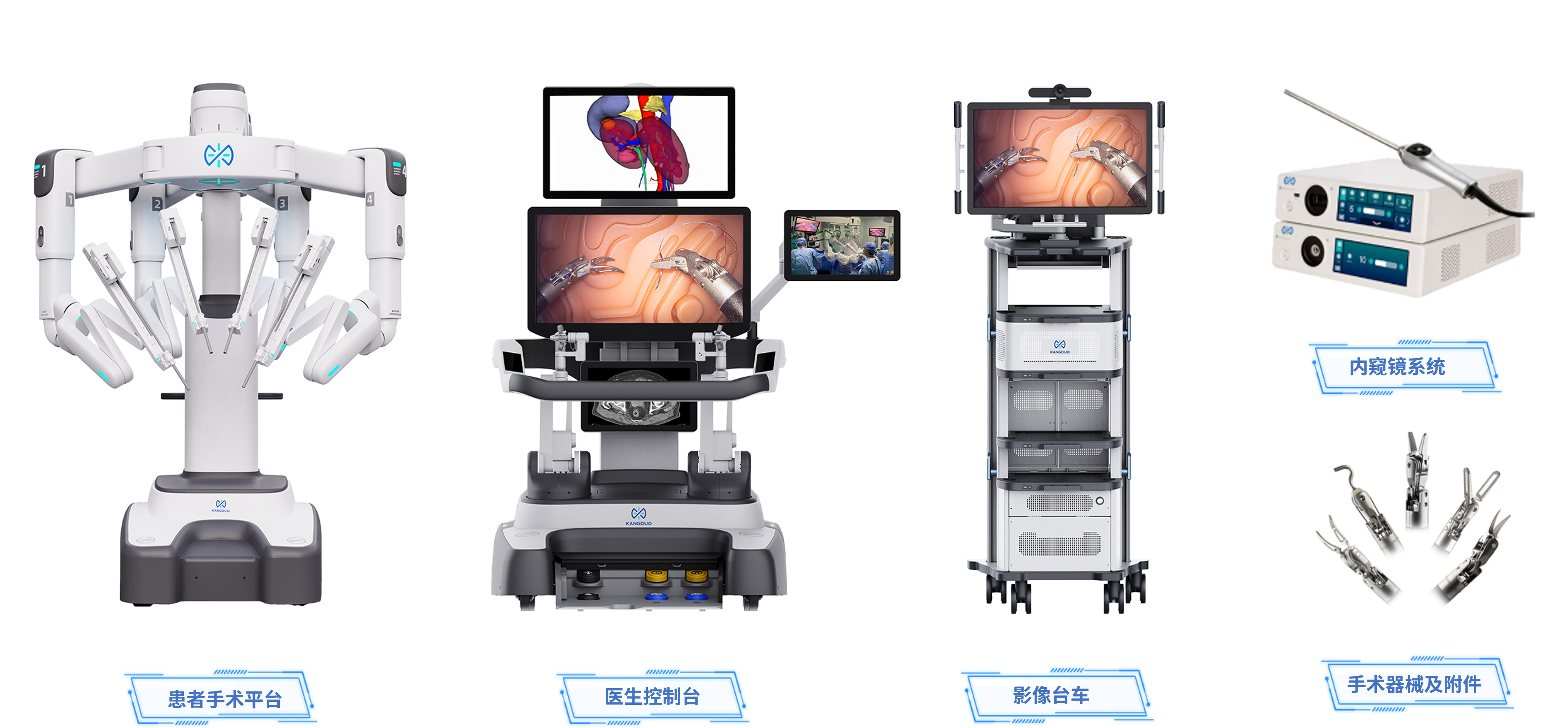 經過多年的探索和積累,在手術機器人領域形成了一系列核心技術和獨創性成果,研發構建了以腔鏡手術機器人家族為核心的豐富的手術機器人產品矩陣,覆蓋泌尿外科、 婦科、普外科、胸外科、耳鼻咽喉頭頸外科、骨科等多科室。